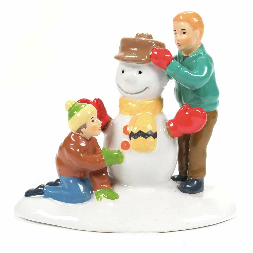 “Gosh, Dad. We can make our snowman look just like good ol’ Charlie Brown!” This father and son share some time creating our favorite Peanuts’ character in snow. They have even added his signature yellow and red scarf.