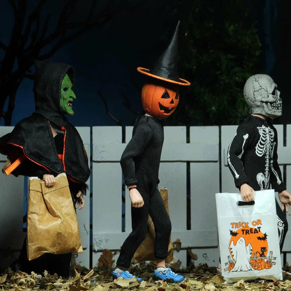 “It’s almost time, kids! The clock is ticking!” New from NECA these 6″ clothed figures include all 3 iconic trick or treaters from the 1982 horror movie.