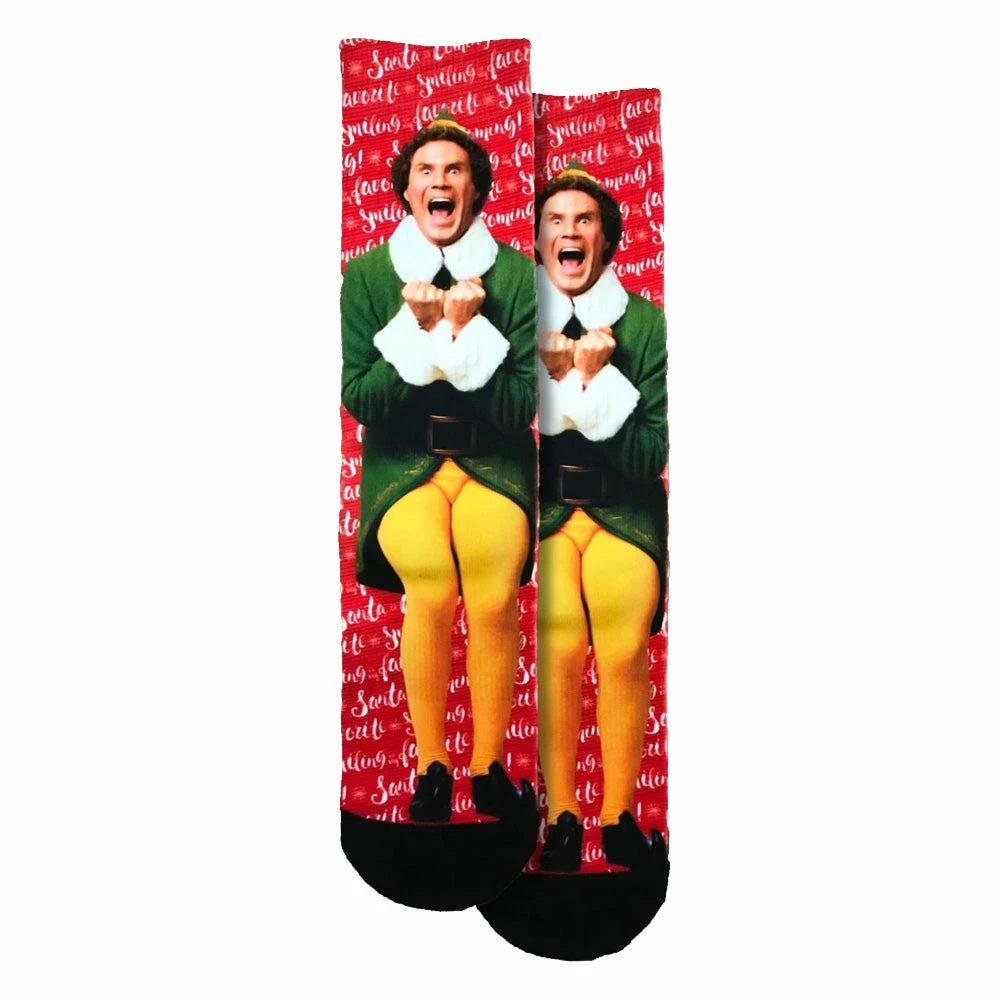 The Elf Buddy the Elf Socks are made of a comfortable polyester blend. One size fits most. Machine washable.